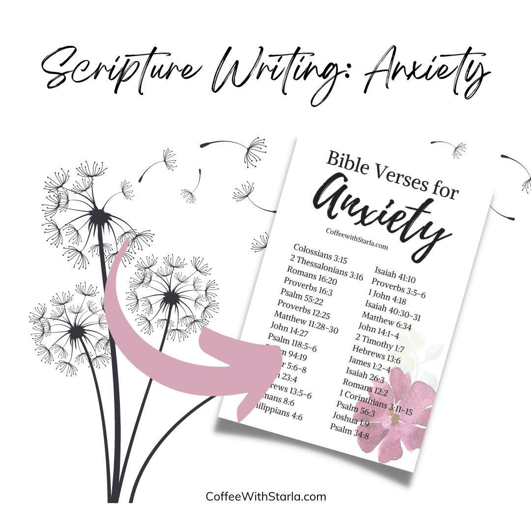This is a one page printable list of Bible verses for anxiety. Take one passage of scripture a day to read, write out and pray over. *Only one free download per person, per month is allowed. Do not make copies. For personal use only.