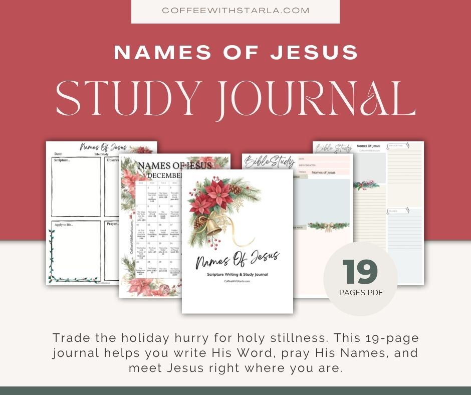 Trade the holiday hurry for holy stillness. This 19-page Names of Jesus Scripture Writing & Study Journal helps you slow down and meet Jesus again—one name, one verse, one prayer at a time. Inside: a 30-day Scripture plan, 31 prayer prompts, 5 study templates to deepen your faith, plus more. Start today and let truth steady your heart this Christmas and beyond.