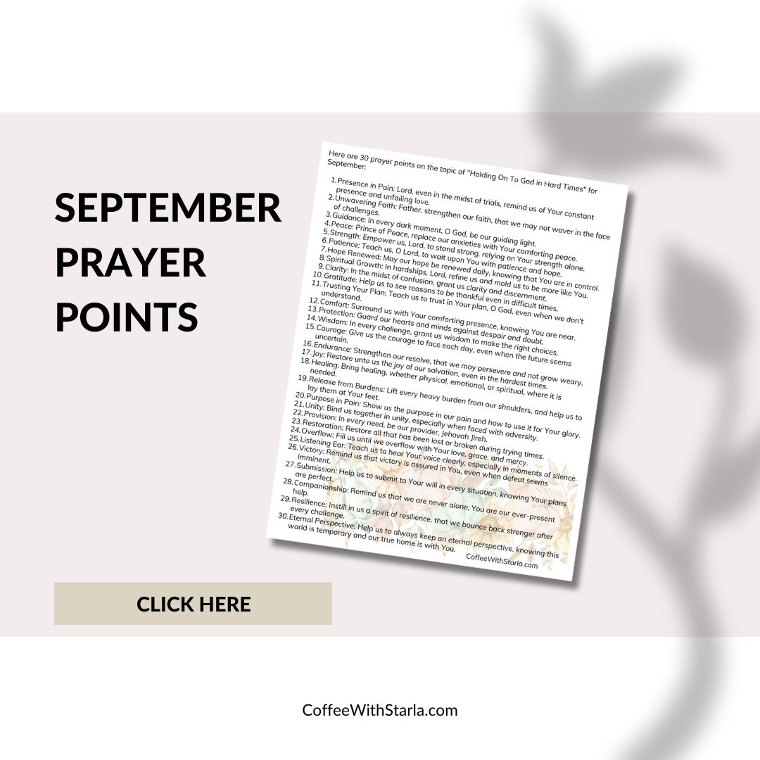 Each day offers a new chance to connect with God. Use these focused points to guide your daily conversations with God throughout September.