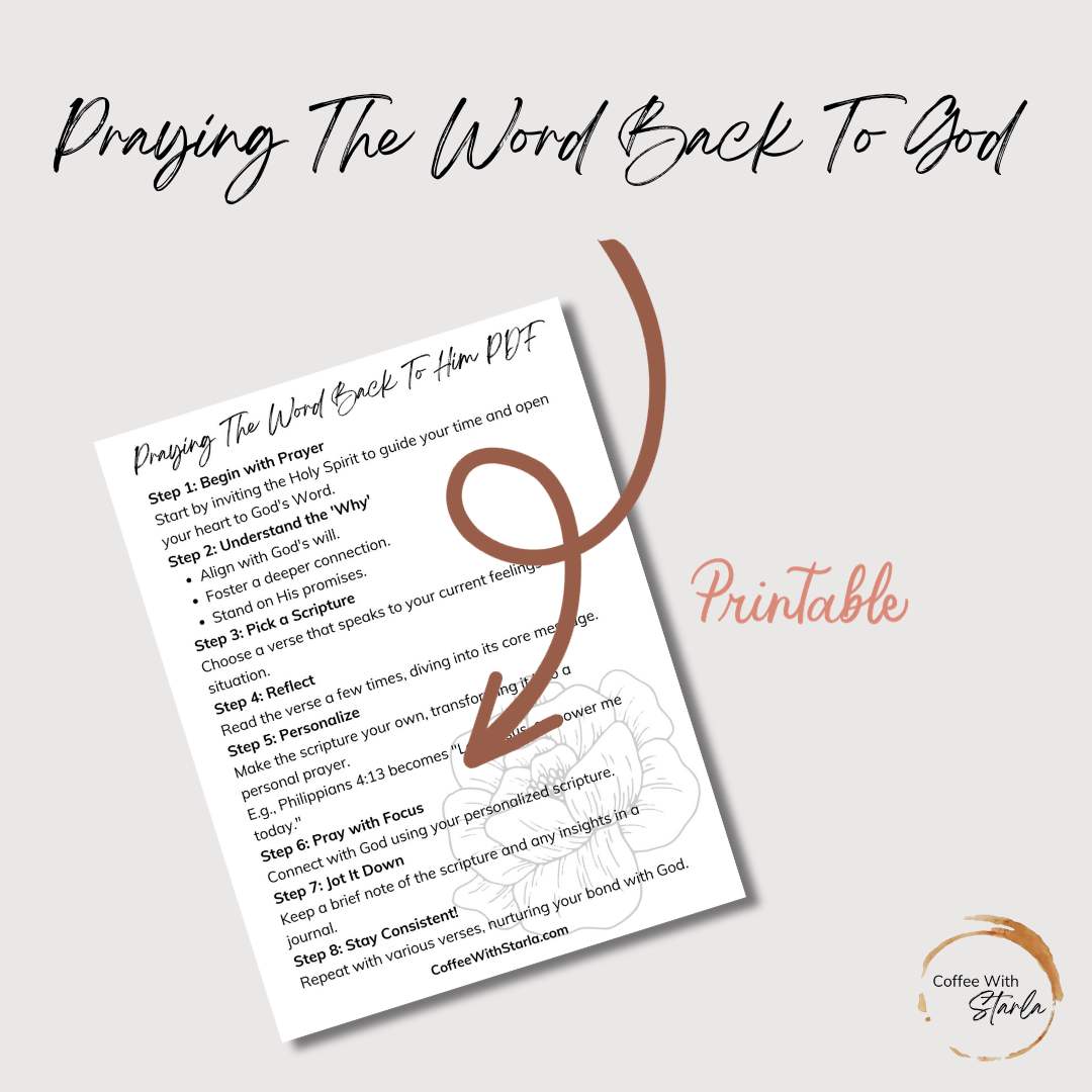 This short guide shows you how to improve your prayer time by using verses from the Bible. If you want to feel closer to God and make your prayers more meaningful, this guide can help. It's easy to follow and great for anyone, whether you're new to praying this way or have done it before. One page printable. For personal use only. Do not make copies.